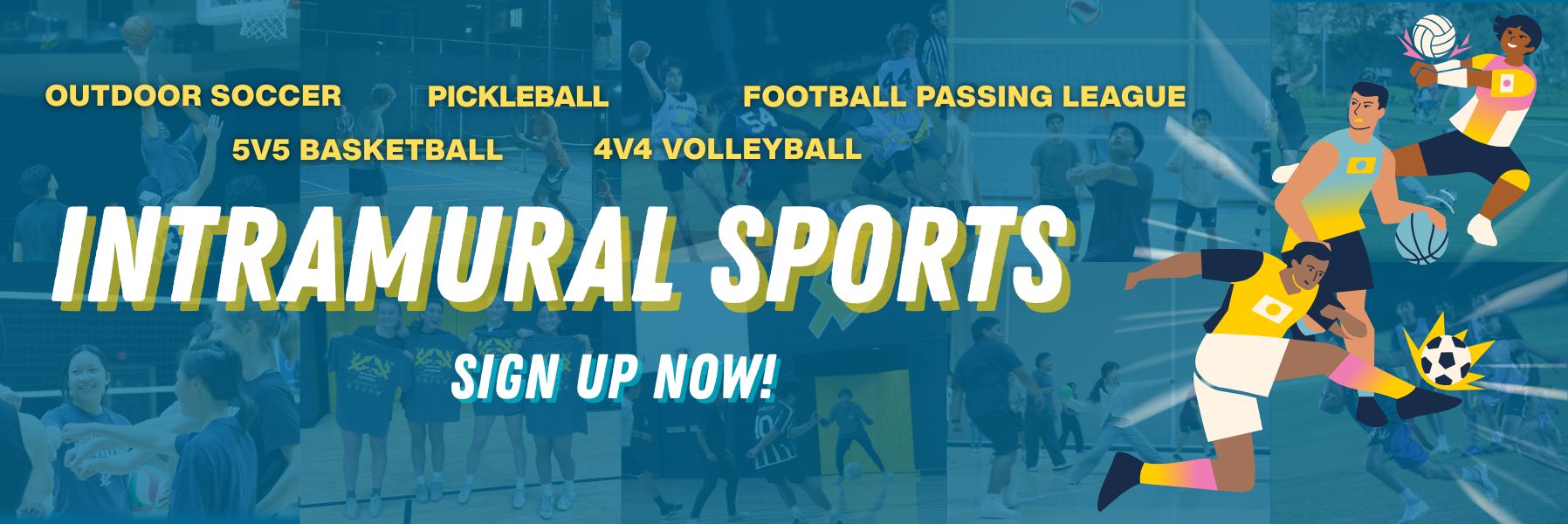Intramural Sports is your home base for recreational team sports. Compete with your friends and classmates in these fun social leagues. Grab a group of friends to form your own team or join an existing team. Sports vary from quarter to quarter, so there is something for everyone!